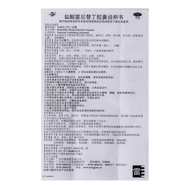 盐酸雷尼替丁胶囊